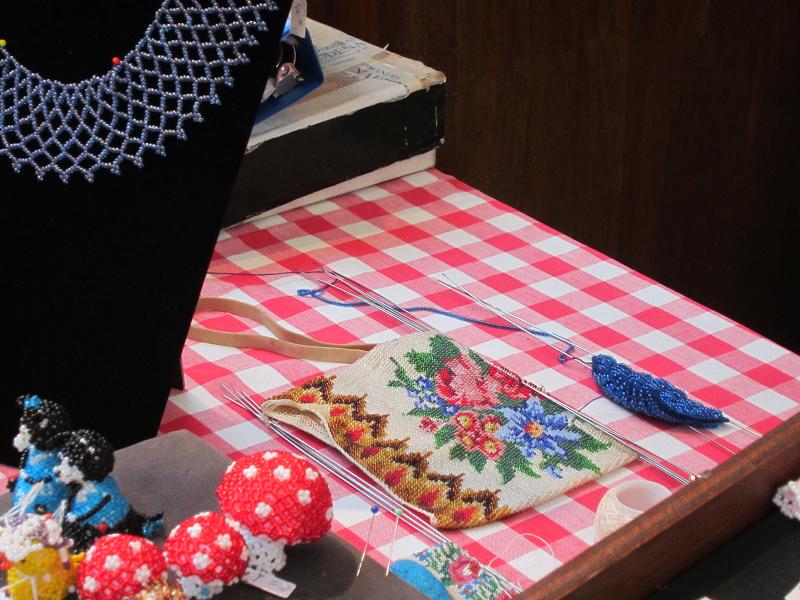 Diese Dame häkelt und strickt mit Perlen allerhand dekorative Dinge. |