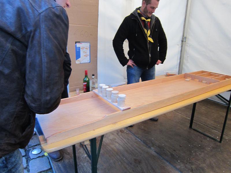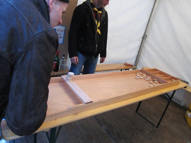 Es erweist sich als schwer, die Holzscheiben durch die Aussparungen in den abgetrennten, hinteren Bereich zu schieben. Möglichst viele sollten es sein. |