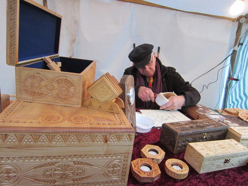 Die holländischen Holzschuhe werden mit Schnitzereien verziert. |